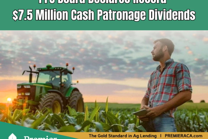 Local ag-lending cooperative, Premier Farm Credit, will pay a record $6.75 million in cash patronage to its customer-owners in early 2024. The financial services cooperative has returned more than $87 million through its Patronage Dividend Program. This year marks the 27th consecutive year a patronage has been paid.